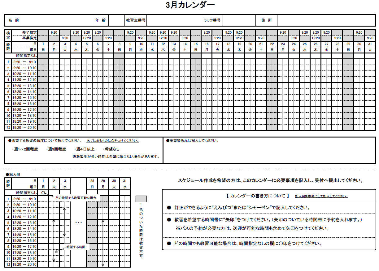 お知らせ 2026.02.23 2026.02.23令和8年3月時間割をアップしました令和8年3月時間割をアップしました。 詳細はこちら ※パスワードは公式ラインかお電話でお問い合わせください。 尚、予定表記入用カレンダーのみこちらからご覧になれます。↓ 3月カレンダー 2026.01.24 2026.01.24当日予約の受付を開始します。1/26(月)から当日予約の受付を開始します。 月曜日から土曜日の毎朝8:25にその日の空き情報を更新しますので、WEBマガジンの 「本日の空き状況」をご確認ください。 当日予約の受付方法についてはこちらをご覧ください。⇒ 当日予約について 2026.01.09 2026.01.09お客様の声「アンケート」を更新しました。新年あけましておめでとうございます。 お客様から頂いたアンケートの一部です♪ 本年も引き続き高評価を頂けるよう、職員一同、より一層サービス向上に努めてまいります。 令和7年11、12月アンケート5件を新たにアップしました。 2025.12.26 2025.12.26春・夏2シーズンプラン&夏休み短期卒業プランのご紹介冬季~春にかけては例年自動車学校が大変混雑します。 予約がいっぱいで、なかなか思ったように教習が進まないことも・・・ 「県外に進学する予定なんだけど、今入校しても春までに間に合わなそう、どうしよう・・・」 そんな方におすすめの「春・夏2シーズンプラン」のお知らせです。 詳しくはこちら 2025.12.16 2025.12.16令和8年1月時間割をアップしました令和8年1月時間割をアップしました。 詳細はこちら ※パスワードは公式ラインかお電話でお問い合わせください。 2025.11.06 2025.11.06【重要】冬季滋賀県から通学予定のお客様へ大変申し訳ございませんが、滋賀県向けスクールバスの運行を 冬季2月3月は休止させていただきます。 休止期間中は電車で敦賀駅まで来ていただき、敦賀駅からはスクールバスでの通学になります。 (交通費支給一部あり) 2025.10.29 2025.10.29お客様の声「アンケート」を更新しました。令和7年7、8月アンケート7件を新たにアップしました。 2025.10.01 2025.10.01「卒業生ストーリー」を更新しました。当校を卒業された教習生3名に、教習生活についてインタビュー! これからご入校をお考えの方、是非卒業生のリアルな声を参考にしてみてください☆↓↓ 卒業生ストーリー 2025.09.17 2025.09.17当日予約について当日予約は随時行っております。お手数ですが空き状況をお電話にてご確認ください。 AOIドライビングスクール敦賀校 0770-22-0500 2025.08.06 2025.08.06お客様の声「アンケート」を更新しました。令和7年 4月~7月アンケート6件を新たにアップしました。 2025.06.24 2025.06.24保育園児向け交通安全教室を開催しました 6月18日、金山保育園の園児の皆様をお招きして、交通安全教室を実施しました! 子供達には正しい交通ルールを元気いっぱい楽しみながら学んでもらいました♪ 2025.05.27 2025.05.27福井県優良教習所として表彰されました! 表彰状をいただきました。 卒業生の事故率の低さなど、これもひとえに卒業生の皆さまの安全運転のおかげであると心より感謝申し上げます。 より一層のサービス向上を目指し、スタッフ一同、業務に尽力してまいります。今後とも引き続きよろしくお願いいたします。 2025.05.09 2025.05.09春の看護大生応援キャンペーン実施中!看護大生応援キャンペーン中です☆この機会に是非! 詳しくはこちら 2025.05.08 2025.05.08お客様の声「アンケート」を更新しました。令和7年 1月~3月アンケート8件を新たにアップしました。 2025.03.31 2025.03.31教習時間の変更について令和7年4月1日より教習開始時間、終了時間が各時限10分早くなります。 教習時間の変更に伴いバスの時刻表も変更となりますので、お間違えのないようお願いいたします。 ・時間割表はこちら ・バス時刻表はこちら 2025.03.13 2025.03.13お客様の声「卒業生ストーリー」を更新しました。令和6年度冬の卒業生ストーリー計2名をアップしました。 2025.03.13 2025.03.13春のライダーキャンペーン!限定10名様、グローブ プレゼントも!春の自動二輪免許のキャンペーンを実施します。 詳しくはこちら 2025.03.11 2025.03.11【重要】運転免許関係手数料の改正について「福井県手数料徴収条例」が改正され、令和7年3月24日から運転免許関係手数料が変わります。 _ 現行料金 新料金 仮免許試験手数料 1,700円 → 1,800円(+100円) 仮免許交付手数料 1,150円 → 1,100円(ー50円) 2025.03.11 2025.03.11【重要】令和7年4月1日より教習料金を改定いたしますこの度、当校では令和7年4月1日より、教習料金を改定させていただくこととなりました。 今回の改定は昨今の社会情勢による、様々な物価の高騰、諸経費の値上がりなどが主な要因です。 お客様にはご負担をおかけすることとなり、大変心苦しい思いですが、ご理解とご協力をお願い申し上げます。 改定後の料金につきましては、4月1日にホームページにて公開いたします。 今後も皆様の安全運転をサポートできるよう、スタッフ一同、より一層努力してまいります。 AOIドライビングスクール敦賀校 2025.01.31 2025.01.31オンラ