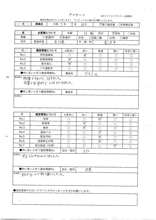 現在教習中の方へアドバイスやメッセージをぜひお願いします。