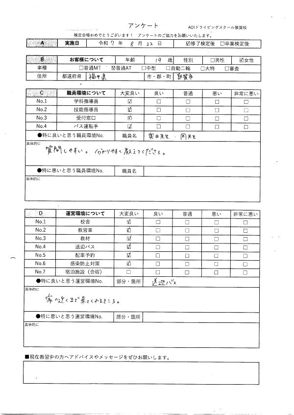 現在教習中の方へアドバイスやメッセージをぜひお願いします。