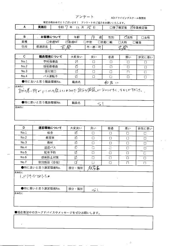 現在教習中の方へアドバイスやメッセージをぜひお願いします。